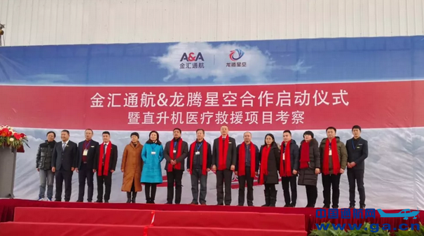 2018年元月30日,在仙桃通用机场内,一场由上海金汇通用航空股份有限公司(以下简称“金汇通航”)湖北分公司与湖北龙腾星空直升机销售服务有限公司(以下简称“龙腾星空”)合作的“空中120”项目正式启动,双方将就金汇通航的直升机医疗救援服务在湖北省内展开合作。 ![]() 正阳集团党委副书记兼金汇通航华中区总经理卢建忠、金汇通航董事詹儒建、金汇通航湖北分公司总经理彭凡、龙腾星空总经理曾文龙、仙桃市市委统战部副部长兼工商联书记张赛祥,以及湖北省工商业联合会的领导与其成员单位出席仪式。来自各商会的的会长、秘书长50余人齐聚一堂,观看了金汇通航救援直升机的演飞训练,并就直升机医疗救援项目的发展前景进行探讨。龙腾星空总经理曾文龙表示:“龙腾星空将与各商会紧密合作,通过项目招商,在各地、市、州、县、区建立城市服务网络,将原本昂贵的直升机救援服务转变为老百姓能消费得起的空中120救援保障服务。”