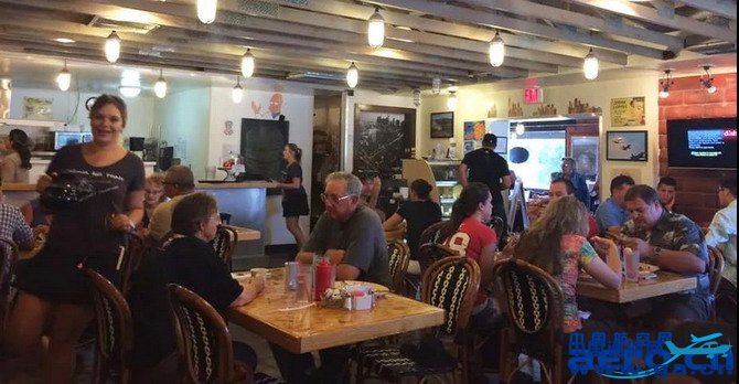 ![]() 在一众美国通航机场中,机场餐厅是一种非常特殊的存在,因为这些餐厅既为往来的飞行员与乘客解决用餐需求,更多地是对当地的一众飞行爱好者和居民们,提供了一个非常好的聚会场所。品味航空主题餐厅,观赏飞机起降,体验航空文化。(这时记起我们刚来降落的时候,坐在候机楼外欣赏飞机起降的长者,在我们路过的时候就夸赞说 “这是一个完美的降落”)。