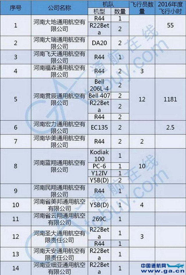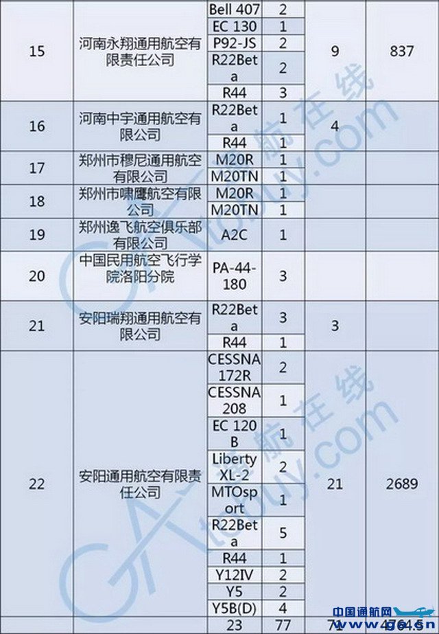 而我根据民航局公开的资料,对河南省通用航空业做了进一步盘点。截止目前,河南省拥有22家通航企业,77架飞机。