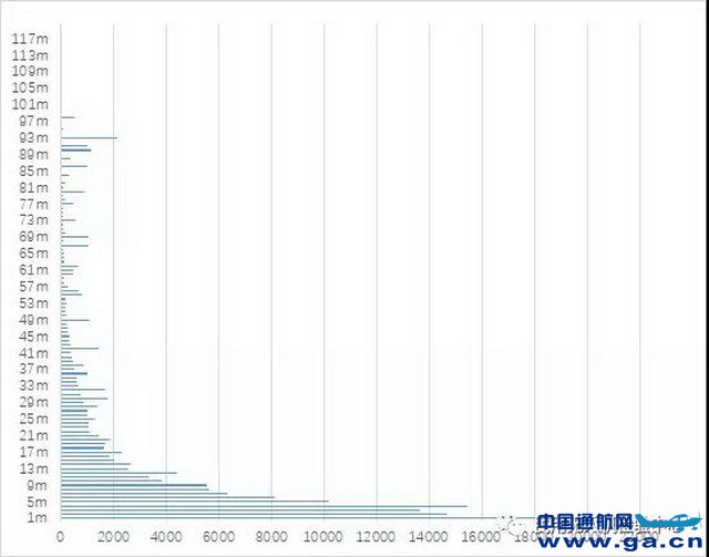 通过统计发现,运行高度在5米(含5米)以下的无人机的飞行小时数占无人机总飞行小时数的42.64%,运行高度在10米(含10米)以下的无人机的飞行小时数占无人机总飞行小时数的 59.4%,运行高度在15米(含15米)以下的无人机的飞行小时数占到了67.96%。运行高度大于120米的无人机飞行小时数仅占总飞行小时数的2.28%。