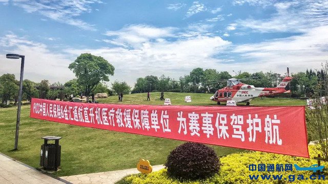 救援直升机停泊在主会场附近,随时待命救援;赛前金汇通航与交警进行了起降点的勘查工作,与崇明赛事医疗保障单位充分沟通,制定了详细的航空救援保障方案。
