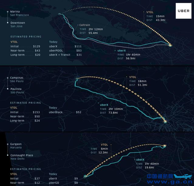 优步公司研究的电动垂直起降空中交通方式可以大幅提高城市出行效率的典型案例。