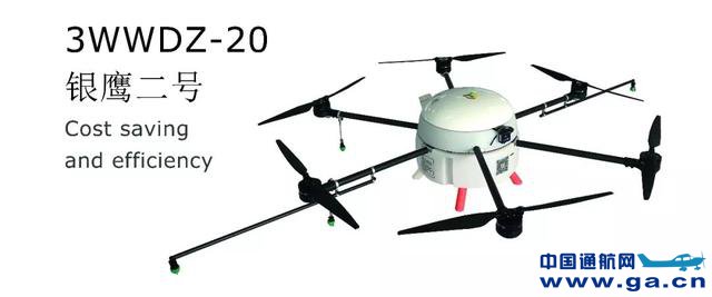 3WWDZ-20是一款六旋翼农用无人飞行器,作业面积约为500-600亩/天,最大作业载荷20kg。采用喷雾杆挂载喷头布局,6个压力喷头,喷幅≤5.1m,最远控制距离为2.5km。支持一站多机,其具有自主巡航、航线规划、可视航线、电量报警、自动避障、地形跟踪、断点续喷等功能。全新中承结构降低机身重量及提升可维护性,快速旋转式折叠特性使其易于装配与运输。手持地面站,支持不规则地块的快速测绘,自动完成航线规划,并根据作业需求,预设飞行和喷洒参数。喷药系统布局先进,避免重复喷药,减少农药残留,创造更高价值。