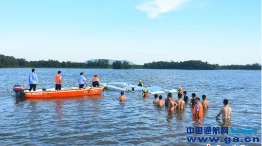 ![]() 7月4日下午,一架水陆两栖的小型飞机在例行飞行训练时失事坠入万宁水库中。 王蕾 摄