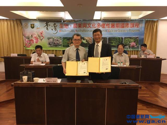 ![]() 纬航太董事长罗正方(右)与台大生农学院的院长卢虎生签订备忘录。