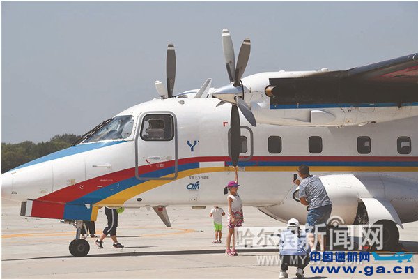 图:在试飞站参观AC312E、AC352、直19E、运12E、运12F五款飞机。图/哈尔滨新闻网