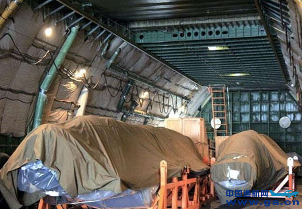 ![]() ![]() 整个JF-17的装载过程,按照配载图和经过周密考虑的货物先后装载次序,并听从中航技现场人员指令,始终在储运人员的掌控之下进行。两架包装好的JF-17机身,安置在安-124运输机巨大的货舱内的情景,并留出第三架JF-17机身位置等待装运。按照新设计的配载图,充分利用货舱空间,比首批多运了一架JF-17,节约了总运输成本。
