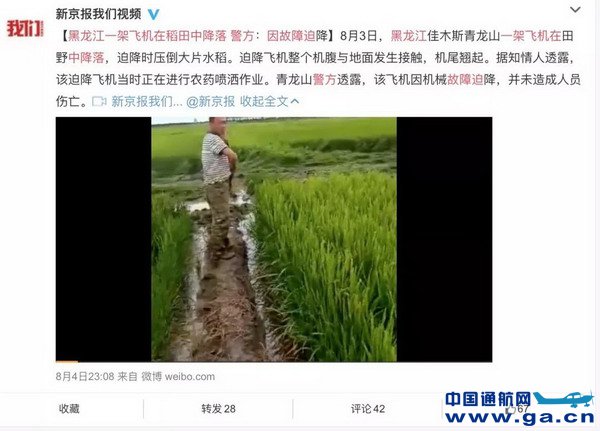 本文链接地址:正在进行农药喷洒作业 飞机突发故障 迫降稻田