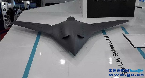 ![]() 展会上展出的双后掠飞翼型无人机概念模型。