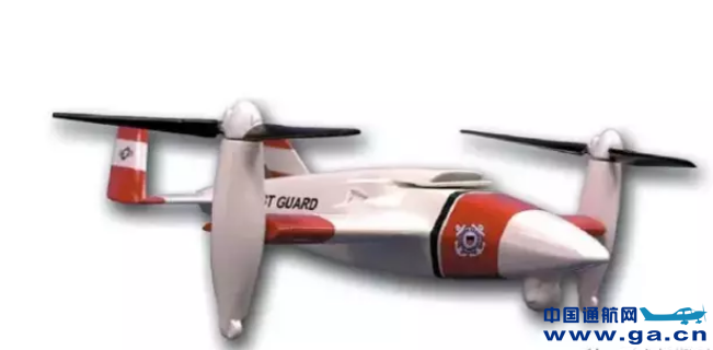 倾转旋翼无人机的发展较晚,在上个世纪90年代美国贝尔公司基于V22“鱼鹰”有人驾驶倾转旋翼机的基础开始研制“鹰眼”无人机,外形上类似于传统固定翼飞机,使用机翼两端的两旋翼结构实现无人机的垂直起降与固定翼巡航,主要用于海事巡逻,机长5.18米,翼展4.6米,最大飞行速度可达388千米/时,空机重量1.3吨,任务载荷重量90-130千克,如图所示。 ![]() 图4 “鹰眼”倾转旋翼无人机