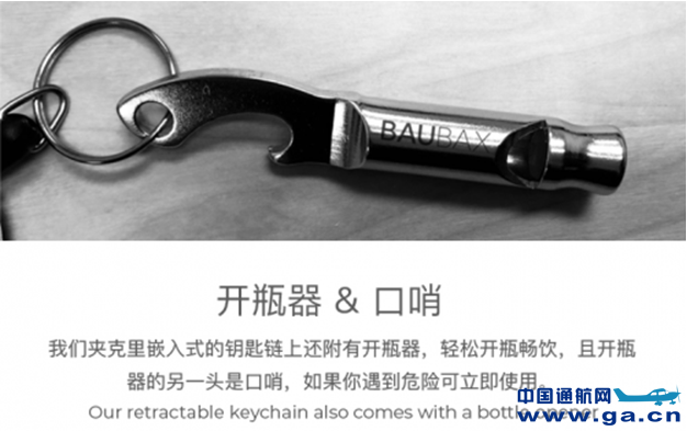 13开瓶器和口哨,夹克里嵌入式的钥匙链上附有开瓶器,助您轻松开瓶畅饮,开瓶器另一头是口哨