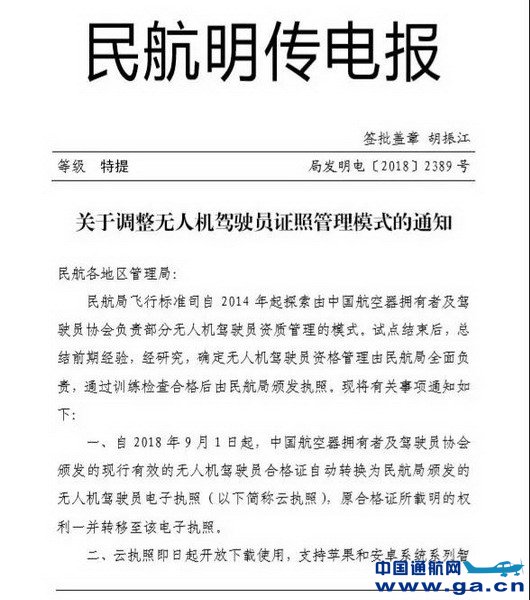 以下是“关于调整无人机驾驶员证照管理模式的通知”文件。