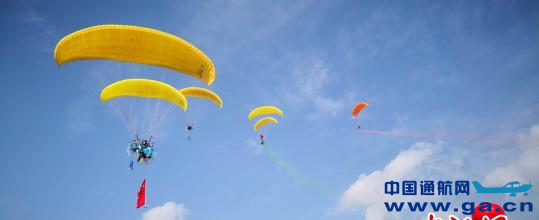 ![]() 图为全国滑翔伞选手进行航空表演。 魏建军 摄