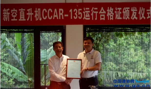 上海新空直升机有限公司获颁CCAR-135部运行合格证