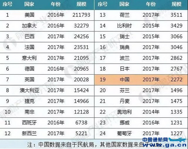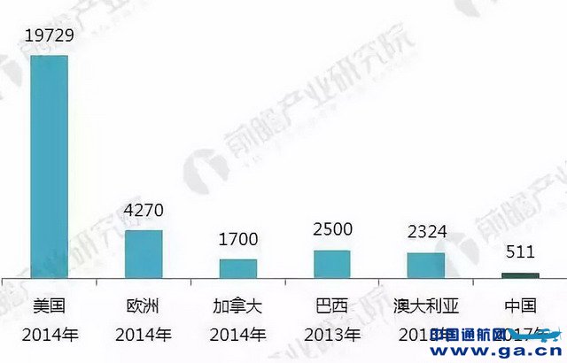 ![]() 通航飞机保有量:美国占一半