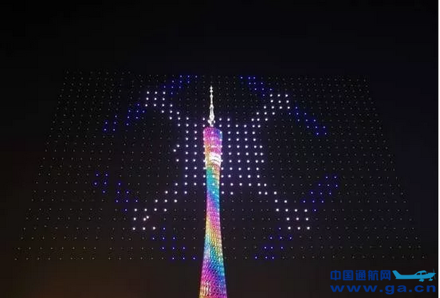 当晚的无人机表演因为天气延后了两个小时,200架无人机在电脑的操控下,按照编程设计的轨迹在天空中组成对应的图形,顺利完成表演。
