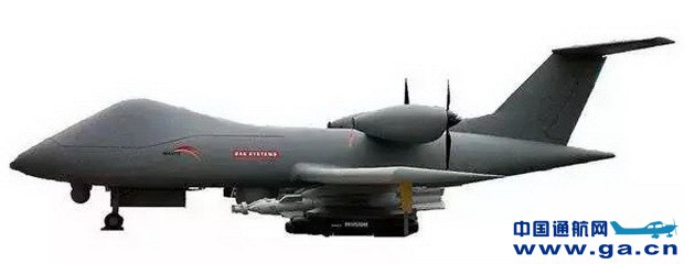 涡轮、电力混合的神剑无人机可以攻击达到600英里外的敌方目标,红外线或者电子光学摄像机追击敌人。3万英尺的飞行高度,不需要跑道的起飞和降落,530英里的时速使得它可以快速的部署。