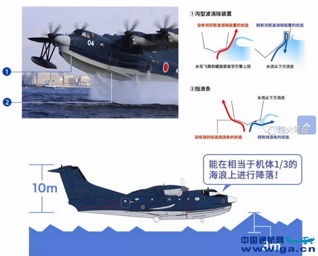 ![]() ![]() US-2的技术特性,其具备在3米浪高的条件下起降,虽然比AG600只多1米,但在实际运用中相差很多,有很多AG600无法降落的海况US-2可以降落。