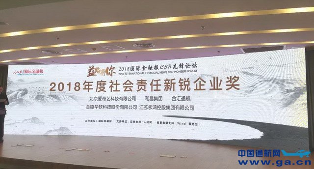 2018年11月16日,位于北京人民日报社新媒体大厦的会议厅,华灯璀璨,全国优秀企业家汇聚一堂,大会以聚焦企业社会责任实践付出、探求企业社会责任发展路径、推动企业社会责任良性发展为方向隆重举行了“益路有你CSR先锋论坛”,金汇通航董事长助理曹龙代表出席,并获颁“年度社会责任新锐企业奖”。 ![]() ![]() 右三:金汇通航董事长助理曹龙