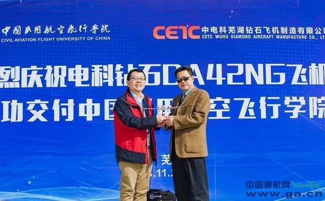 11月29日,中电科芜湖钻石飞机制造有限公司(以下简称“芜湖钻石飞机”)在园区举办了中电科芜湖钻石飞机DA42NG飞机交付仪式,中国民航飞行学院副院长李勇军、中电科芜湖钻石飞机公司总经理洪雨宁出席交付活动。 一大早,待交付的DA42NG飞机方阵就已经整齐地停在了中电科芜湖钻石飞机停机坪上,每架飞机的机身都喷有中国民航飞行学院精致的LOGO和漂亮的涂装。阳光下,DA42NG阵队尤为闪耀,此刻他们正在等待主人接他们回家呢! 洪雨宁表示飞机交付仅仅是双方合作一个新的起点,芜湖钻石飞机公司会不断聚焦于民航飞行学院的需求,持续提升产品和后期服务质量,增强售后服务响应效率;希望双方能够继续发挥企业优势,博采众长,期待日后双方更加长远和深入的合作。 李勇军对DA42NG飞机表达了认可和喜爱,感谢芜湖钻石飞机团队一直以来为民航飞行学院项目提供的支持。同时期待双方继续强强联合,共同为产业发展提供动力。未来,期待芜湖钻石飞机提供更多优质的产品和服务。最后祝愿芜湖钻石飞机成长为中国通用航空产业领域的领军企业。 在各位来宾的共同见证下,芜湖钻石飞机公司洪雨宁将DA42NG飞行包、飞机钥匙交到民航飞行学院李勇军副院长的手中。自此,“中电科芜湖钻石造”DA42NG飞机正式服役于中国民用航空飞行学院。 作为飞机生产服务商,中电科芜湖钻石飞机公司继续为市场提供更多性能优异的飞机,做好飞机研发和制造、做好飞机交付和服务工作,顺势而为促进通航产业新发展。 民航飞院钻石DA42NG飞机 ![]() 民航飞院钻石DA42NG飞机