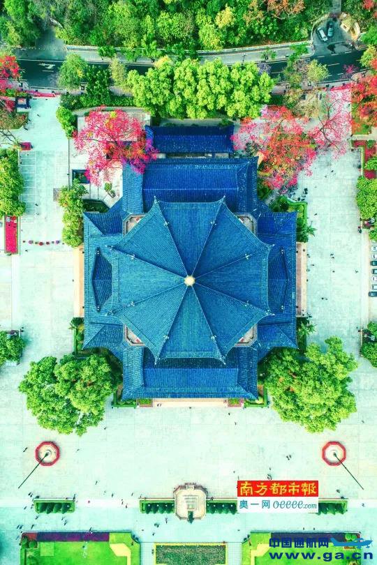 二中兄在做放飞无人机前的准备工作。 ![]() 无人机航拍的中山纪念堂。