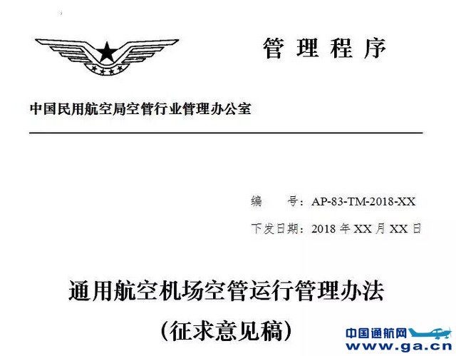 1、《通用航空机场空管运行保障管理办法(征求意见稿)》