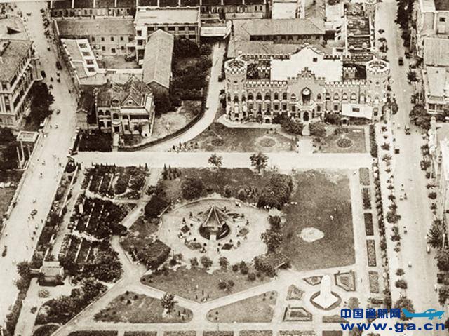 【中山路】画面右侧为中山路,右偏上为金钢花园。花园前身为1875年李鸿章为筹办北洋海军而建立的海防公所。辛亥革命后,为直隶省政府、河北省政府驻地。民国十七年(1928年)成为天津市政府驻地。民国二十六年(1937年)7月,遭日本飞机轰炸成为废墟。