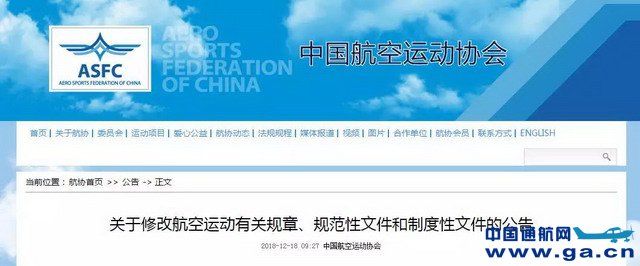 这是继交通部11部民航法规修改决定(见通航圈前文《最全收藏 |改革力度空前、政策福利满满:交通部发布《一般运行和飞行规则》等11部重要民航法规的修改决定,将于明年1月1日起施行!》《交通部官方解读全文发布:关于《民用航空人员体检合格证管理规则》等十一部规章修订的政策解读》)后,体育口传来的又一系列的通航福利。中华全国体育总会官网也对此进行了转载。