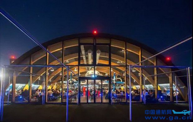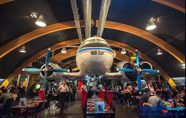 一名瑞士飞行员选择一架报废的俄罗斯伊尔-14型运输机在政府的支持下在苏黎世机场旁建成了航空主题餐厅。它拥有巨大的机库外观,飞机被放置在餐厅内,餐厅外可以看到机场跑道,飞机客舱变成了包厢,驾驶舱的设备被保留下来,供客人参观。被称为航空文化氛围最浓厚的主题餐厅。