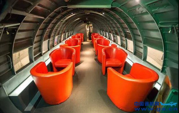 案例三:瑞士航空主题餐厅 瑞士航空主题餐厅创意新奇 报废飞机变身包厢