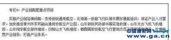 鼓励和引导省内高校与国内外院校、培训机构加强交流合作。鼓励社会力量参与通用飞机产业人才培养和引进,营造有利人才发展的良好环境。 中国通航网 www.ga.cn 通航翻译 www.aviation.cn 本文链接地址:重磅!《山东省通用飞机产业发展规划》印发 将成立省通用飞机产业发展领导小组(2) |