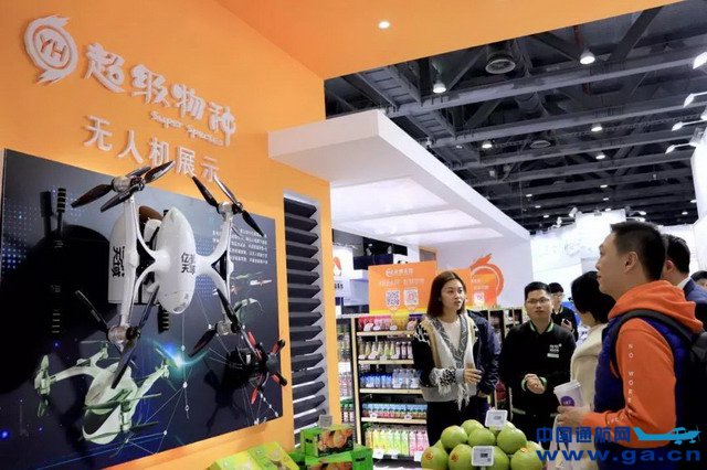 ![]() 亿航天鹰物流无人机吸引大批参展观众的注目, “无人机送外卖”成为热门话题。