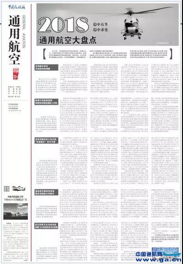 1月14日,《中国民航报》刊发了北京航空航天大学通用航空产业研究中心主任高远洋的署名文章《2018通用航空大盘点》。文章指出了当前通航发展的严峻形势:”制约我国通航发展的制度性障碍还未消除,通用航空发展环境尚需根本性改善,通用航空产业发展形态与聚集效应还没有完全显现出来“,”从目前来看,如果市场没有突破性发展,要实现国务院办公厅《关于促进通用航空业发展的指导意见》中确定的2020年保有量5000架的目标几乎就是一个不可能完成的任务“。当然,对于我国通用航空能不能实现突破性发展,文章给出了肯定的答案:”答案是肯定的,但依赖于发展环境的根本性改善,尤其是低空开放,也依赖于通用航空运营市场能有方向性突破“。文章指出,”突破口在运营市场结构上“”消费类飞行才是最为精彩的通用航空业务领域""应尽快开拓通用航空消费市场,从而带动通用飞机销售量的进一步增长“。