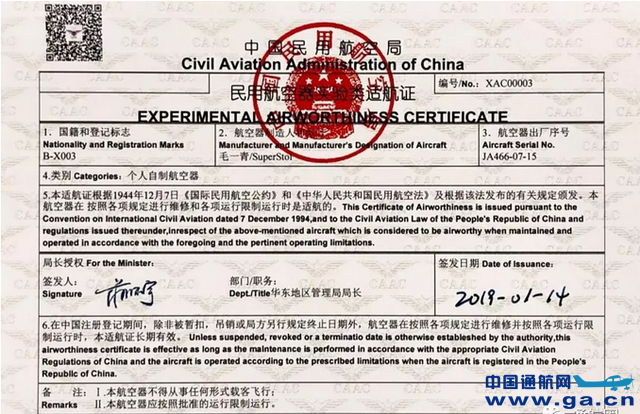 本文链接地址:民航华东局再出手,颁出我国民航史上首张固定翼实验类适航证!