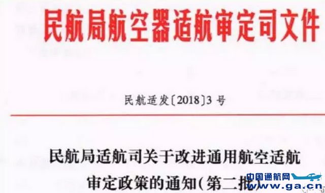 ![]() 民航适发[2018]2号文:《政策 | 通航适航审定政策再松绑!适航司印发<关于改进通用航空适航审定政策的通知>并将在4月30日前制定下发相关细则》