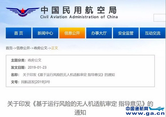 ![]() 为促进国内民用无人机产业健康成长,1月23日,民航局印发《基于运行风险的无人机适航审定指导意见》,针对无人机运行场景丰富、运行风险多样的特点,开展基于运行风险的适航管理,推动形成基于运行风险的民用无人机适航管理模式。