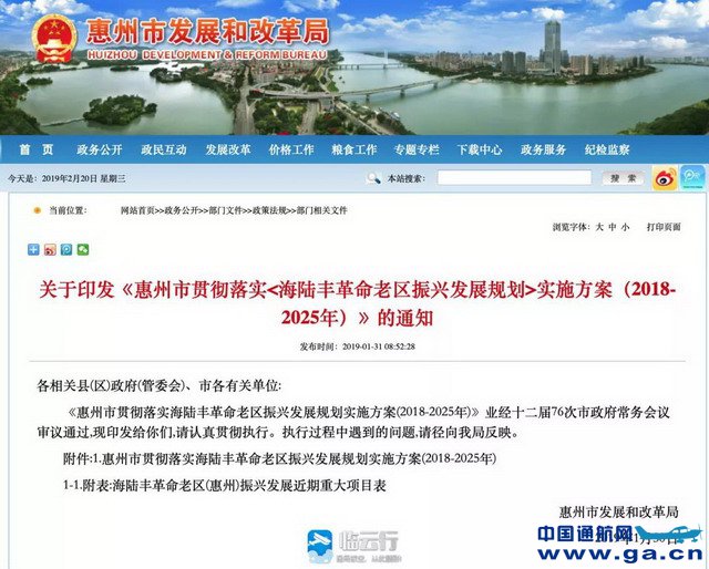 01、斥资66亿元!广东惠州拟在惠东布局建设通用机场 ![]() 近日,记者从市发展和改革局获悉,《惠州市贯彻落实〈海陆丰革命老区振兴发展规划〉实施方案(2018-2025年)》(以下简称“《实施方案》”)已出炉,上述涉及惠州海陆空的大交通建设项目均写进了方案。这些项目一旦落地,不仅促进惠州市纳入海陆丰革命老区的两区一县(惠城、惠阳、惠东)振兴发展,还将促进惠州陆海空大交通的再度升级。