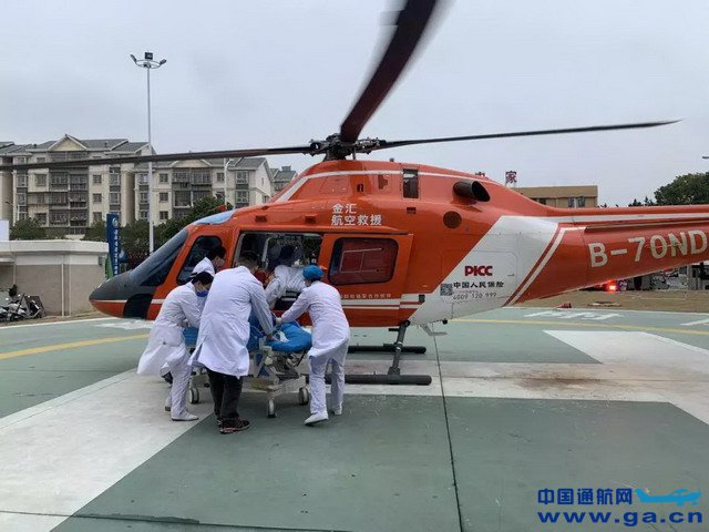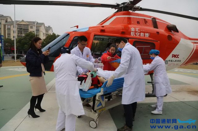 在接到救援任务并判断患者病情适合转运后,金汇通航工作人员接洽相关单位及病人家属,进行沟通与确认,各部门配合迅速开展紧急救援。 11:00,金汇通航救援直升机从赣州基地起飞; 11:44,救援直升机顺利降落遂川县人民医院临时起降点; 12:04,遂川县人民医院医护人员将患者抬上直升机,随后直升机起飞; 12:35,直升机降落于赣医一附院,医护人员将病人送往ICU病房,救援任务圆满完成。