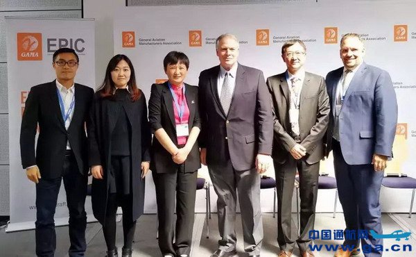 ![]() 从左至右依次为:Flying Pages主编苟昕 · 中关村蓝创通航产业联盟秘书处戴璐璐 · 中关村蓝创通航产业联盟秘书长陈鹏 · GAMA主席及CEO Peter Bunce · 中关村蓝创通航产业联盟副理事长郭鸿生 · GAMA国际通航新标准事务副总裁Gregory Bowles