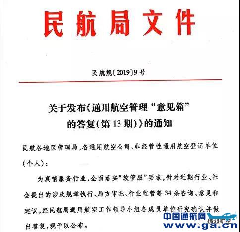 本文链接地址:民航局发布《通用航空管理“意见箱”的答复(第13期)》