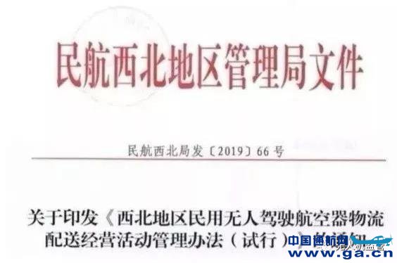 3月22日民航西北局正式印发了《西北地区民用无人驾驶航空器物流配送经营活动管理办法(试行)》(民航西北局发[2019]66号)。
