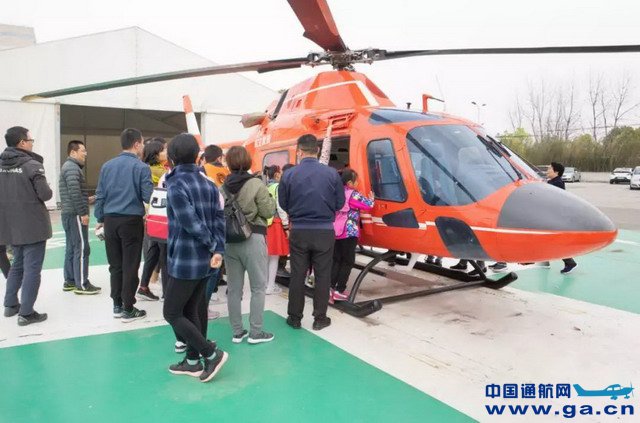 最后,家长们和小朋友们与AW119专业医疗构型直升机合影留念,小朋友们还在金汇通航工作人员的带领下近距离接触直升机,客串了一把小小飞行员。