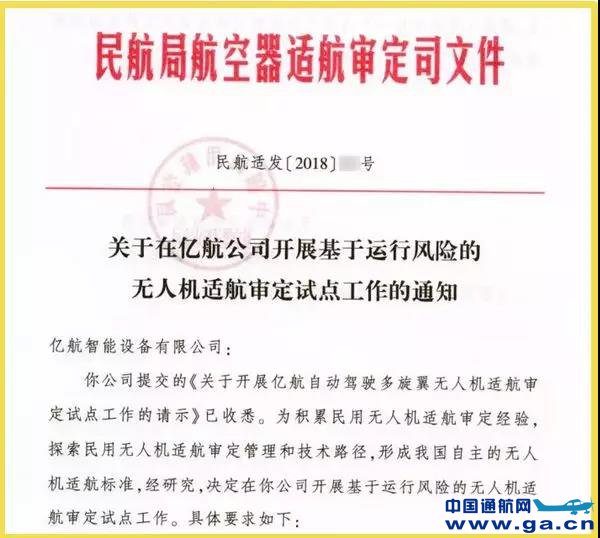 ![]() 2018年6月,亿航智能在广州开通第一条城市内无人机物流配送航线。2019年1月,亿航智能获得中国民航局授权,成为中国首家且唯一载人无人机适航审定试点单位,并志愿协助民航局,以实际运行情况的真实数据为基础,共同建立相关审定标准和依据(见通航圈前文《我国首个载人无人机试点花落亿航,中国移动获批全国首片无人机基站巡检空域,国内首个5G+无人机城市立体安防在青岛试商用》)。