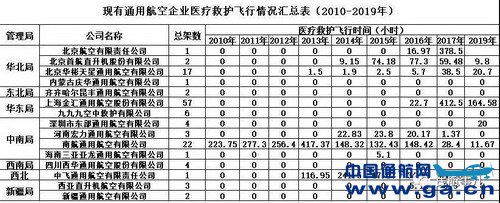 为便于开展医疗救护飞行业务,推进“通用航空+医疗救护”融合发展,民航局运输司汇总了现有通用航空企业近年来开展医疗救护飞行的相关数据,供相关行业单位参考。数据由相关企业提供。 民航华北地区管理局