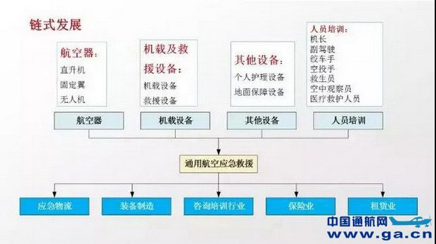 因此可以从救援飞机装备(直升机、固定翼飞机、无人机等)的研发生产、配套设备的研发生产、检测设备的研发生产、专业人员的培训复训、空地救援指挥系统的构建等方面发力,打造通用航空救援的庞大链式产业。