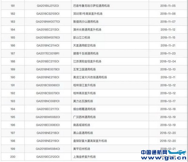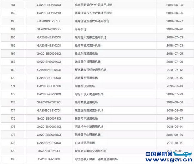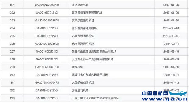 截至2019年04月15日,全国213个已取证通用机场名单如下(点击看大图):