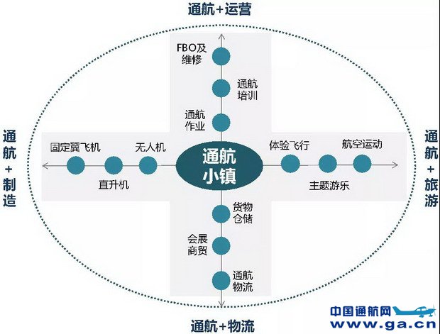 通航+制造即“通航机场+生产区+配套区”模式,主要是打造通航垂直整合产业发展模式,主要发展包括飞机的研发、总体设计、零部件加工、发动机与机载设备研发生产、飞机总装及交付试飞。