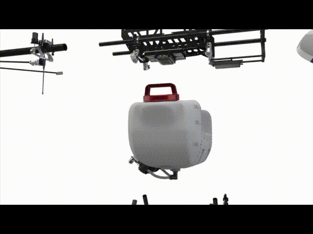 ![]() 药箱采用双侧半旋式提把,在实际作业中只需半旋90度即可开盖实施双向补药工作,一次换药、换电池仅需要一分半钟的时间。