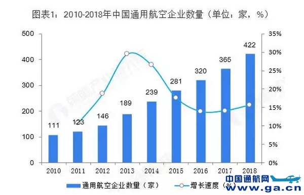 根据民航局通用航空管理系统中通航企业数据,截至2018年12月31日,我国通航企业总数达422家,较上年增加57家,涨幅为15.6%。