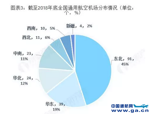 ![]() ![]() 根据AOPA中国的统计,截至2018年底,全国取证通用机场已达202个。已取证的202个取证通用机场中,主要集中在东部地区,东北地区共有91个,占全国总量的45%;华东地区共39个,占全国总量的19%。